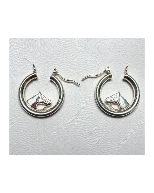 Beautiful Sterling Horseheads Placed Inside Tube Hoops Earrings ONE ONLY
