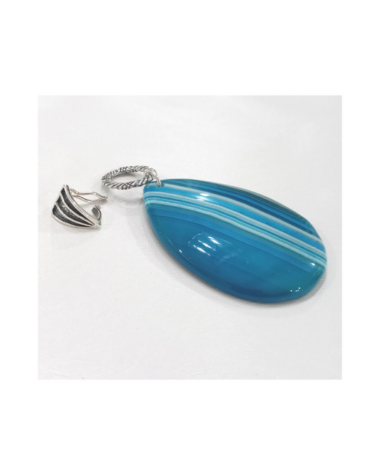 Sterling blended colors of beautiful turquoise blue white striped agate design enhancer pendant with removable interchangeable clip. ONE ONLY.