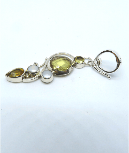 Sterling Citrines, Checkerboard-cut Lemon Quartz with Pearls Enhancer Pendant Approx. 2 1/8"L X 1/2". ONE ONLY.