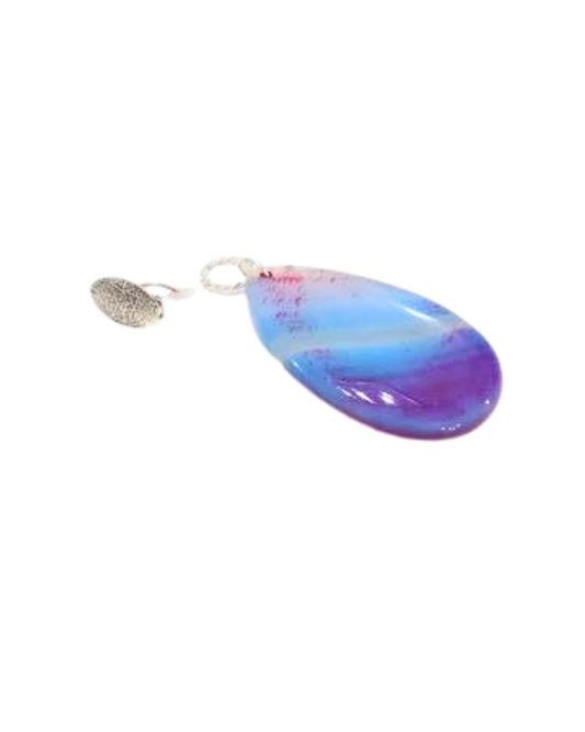Beautiful Blue, Pink, and Purple Blended Agate Sterling Design Enhancer Pendant with Removable Interchangeable Clip 3 3/16"L X 1 3/8"W ONE ONLY.
