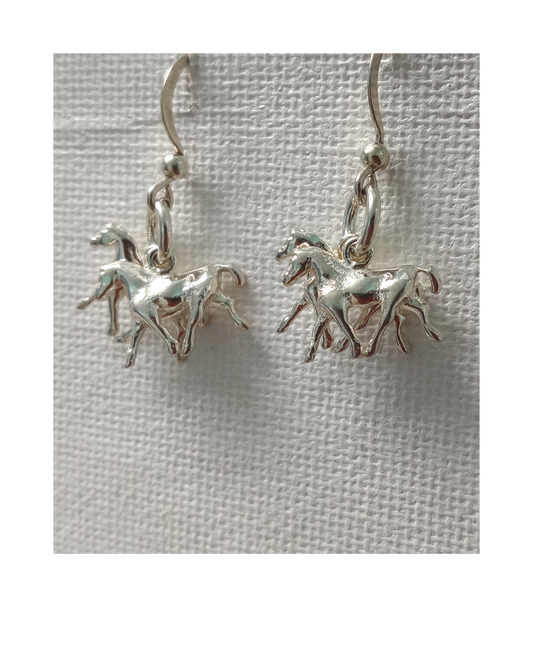 Sterling 3-D Race Horses Neck n' Neck Earrings