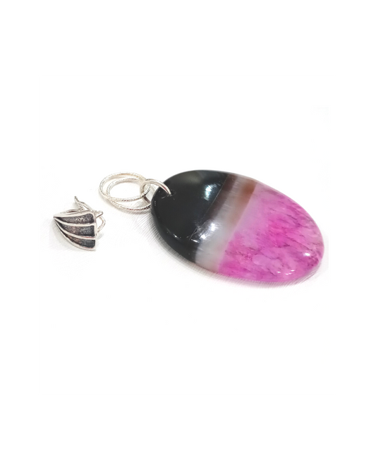 Pink, Black Blended Stunning Agate Sterling Enhancer Pendant with Unique Removable Interchangeable Clip 2 13/16"L X 1 3/8"W ONE ONLY