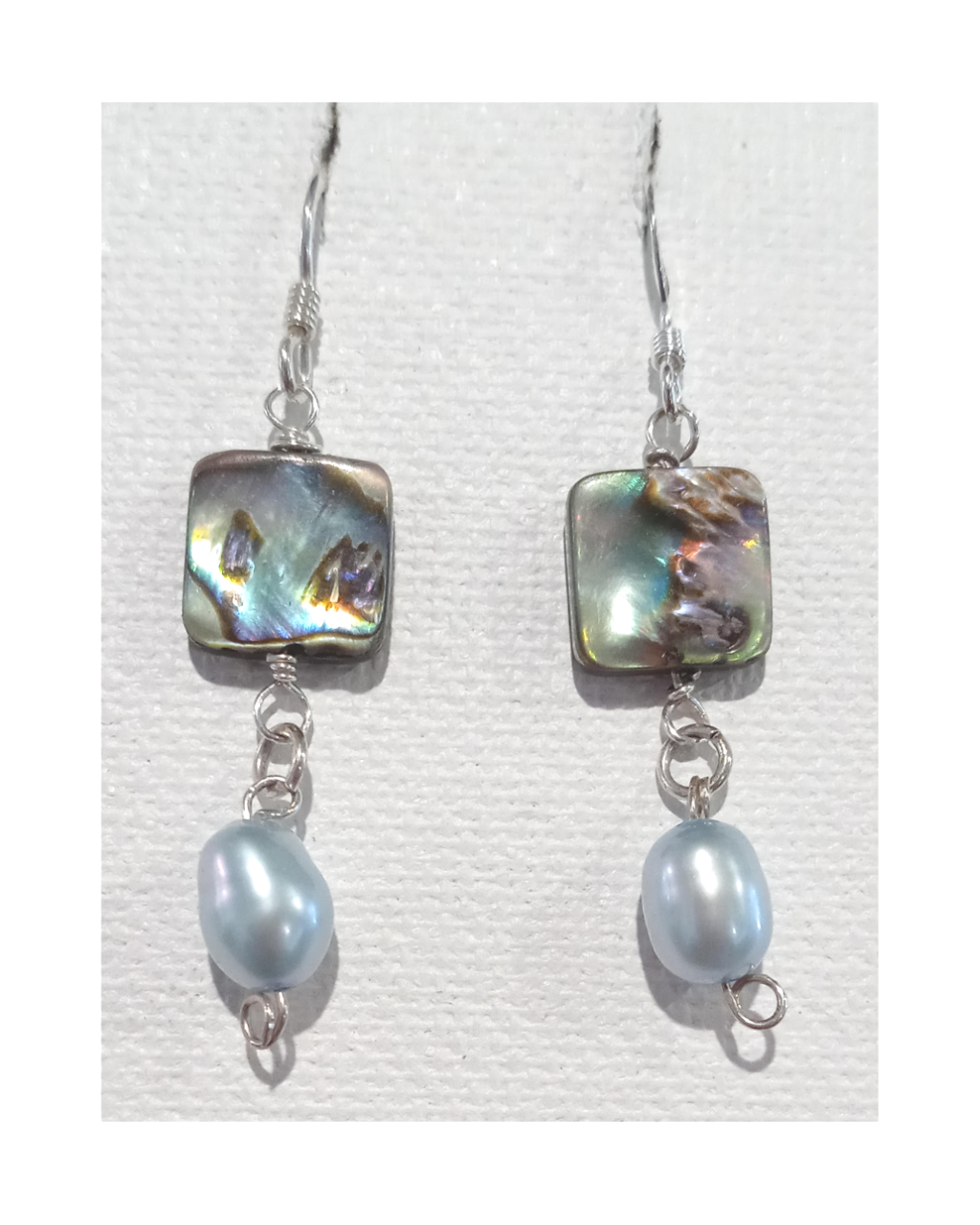 Abalone Shell and Grey Pearl Sterling Earrings 1 7/8" ONE ONLY
