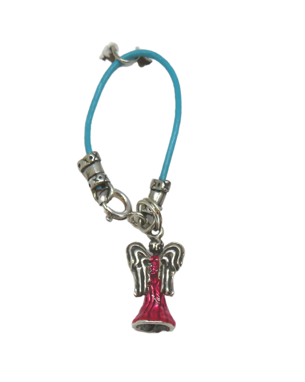 Christmas Angel 3-D with Crystals Hand-enameled Removable Sterling Silver Charm on Leather and Sterling KooLoop approx. 2 13/16"