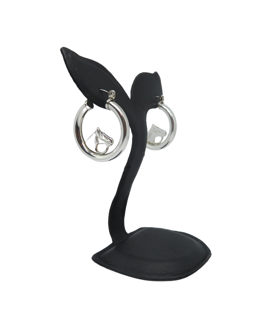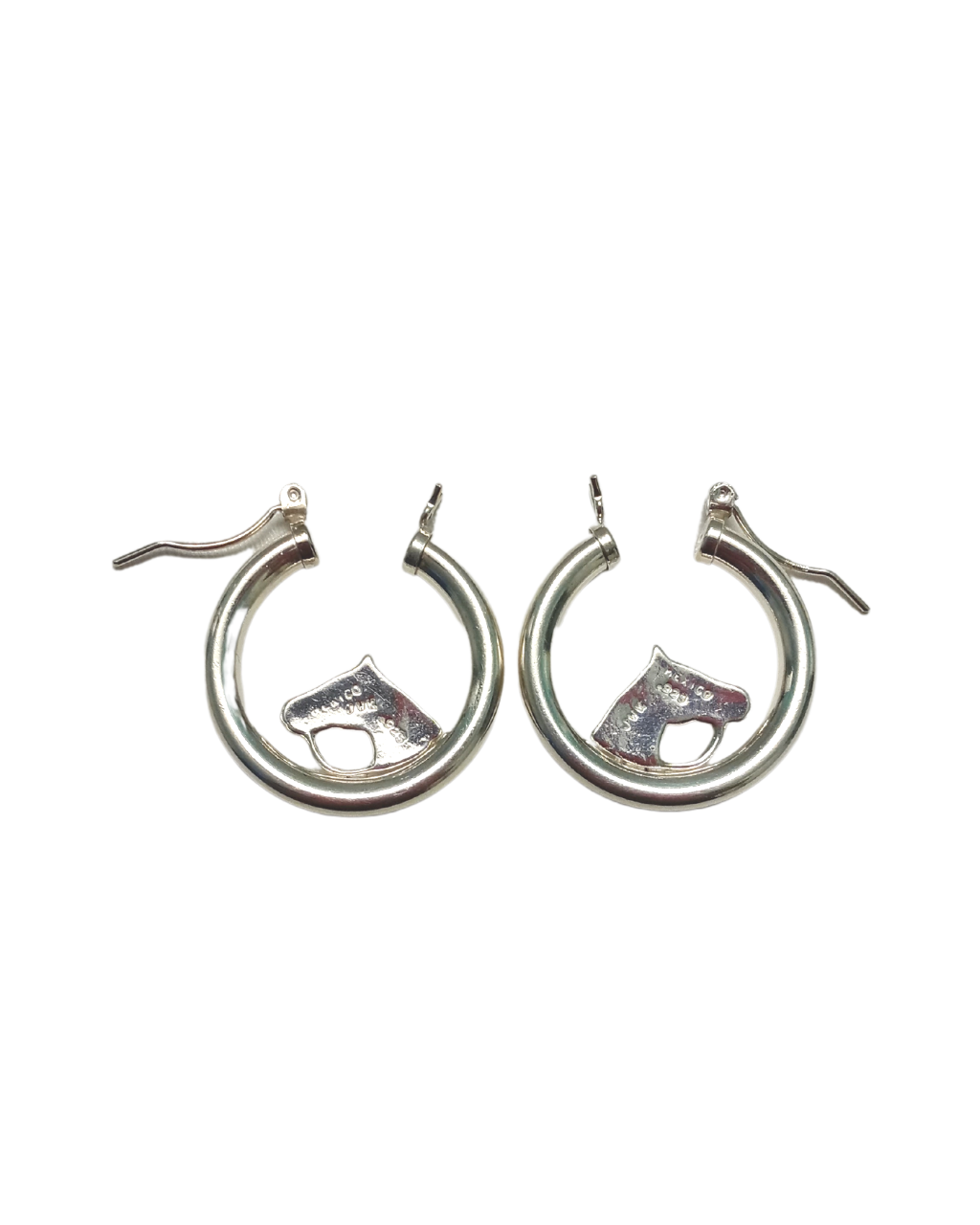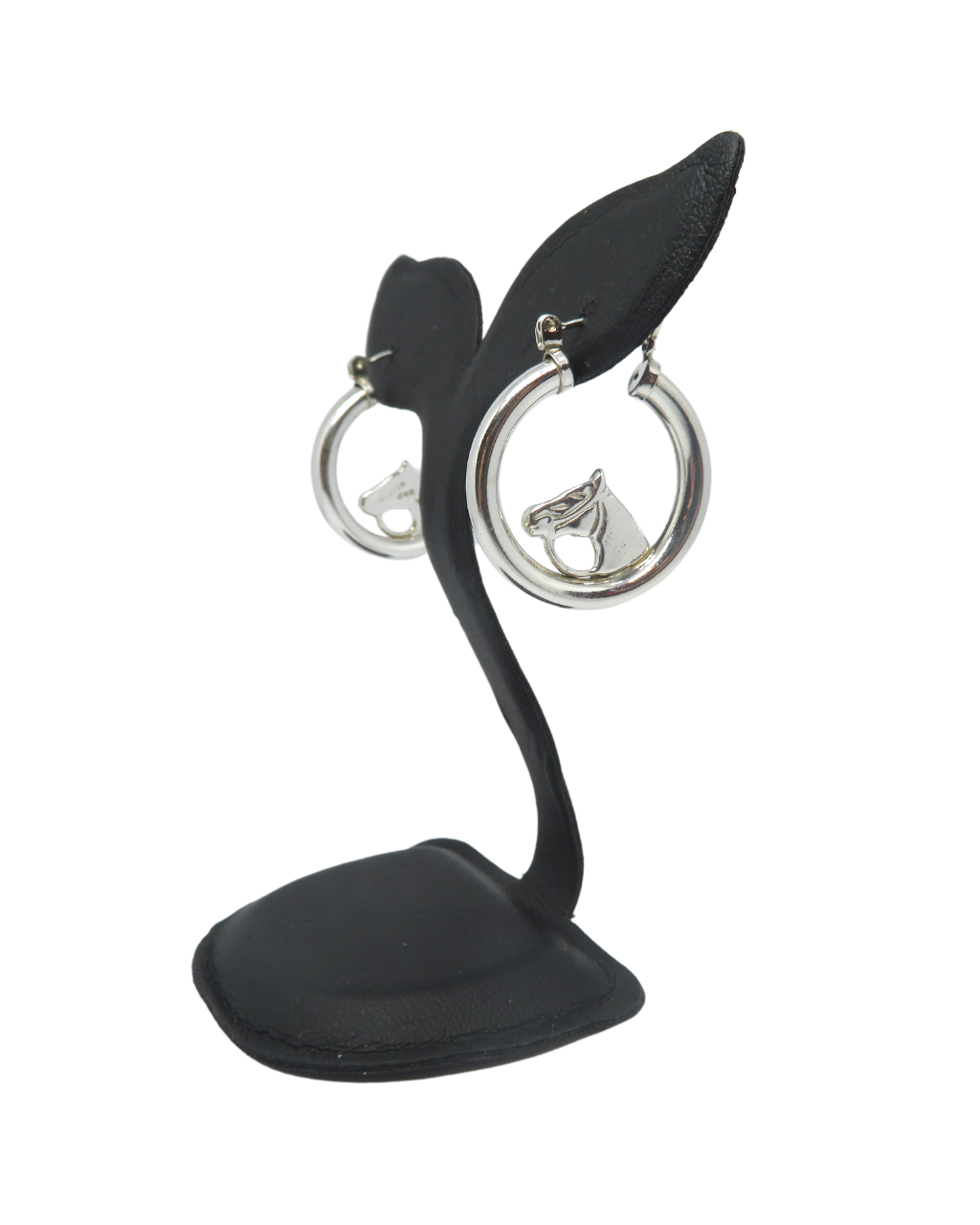 Beautiful Sterling Horseheads Placed Inside Tube Hoops Earrings ONE ONLY
