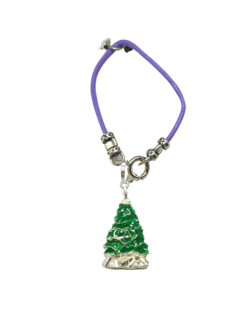 Sterling Christmas Tree 2-sided Hand-enamel Removable Charm on Leather and Sterling Silver KooLoop approx. 2 13/16"