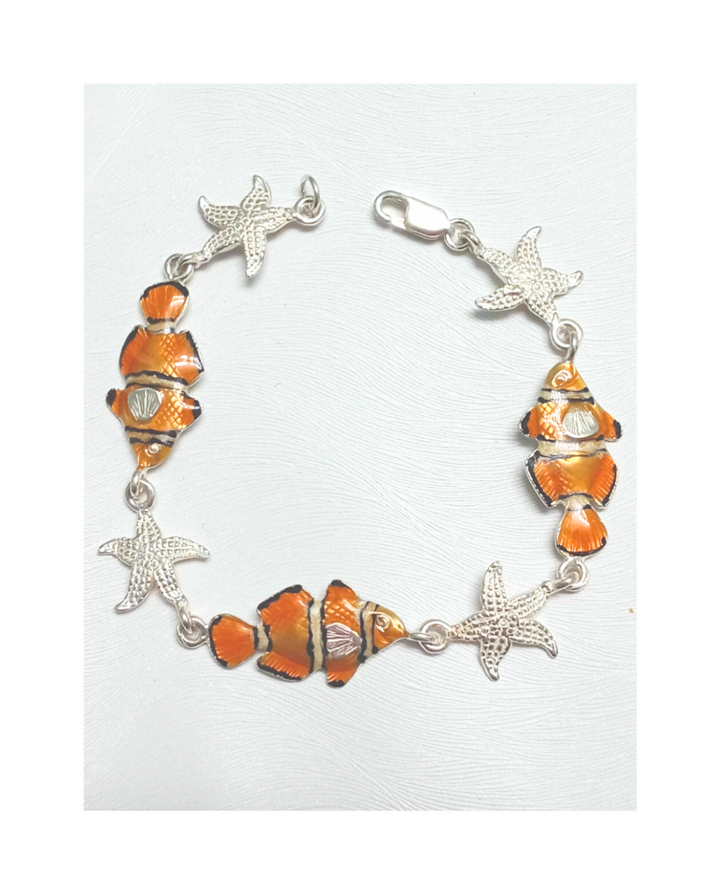 Clownfish Hand-enameled and Detailed Starfish Sterling Silver Bracelet 7 1/2 X11/16"