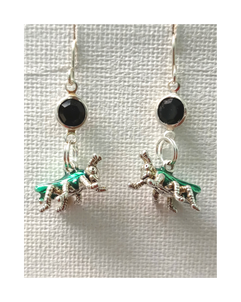 Exclusive Hand-enameled 3-D Green Good Luck Cricket with Swarovski Crystal Sterling Earrings