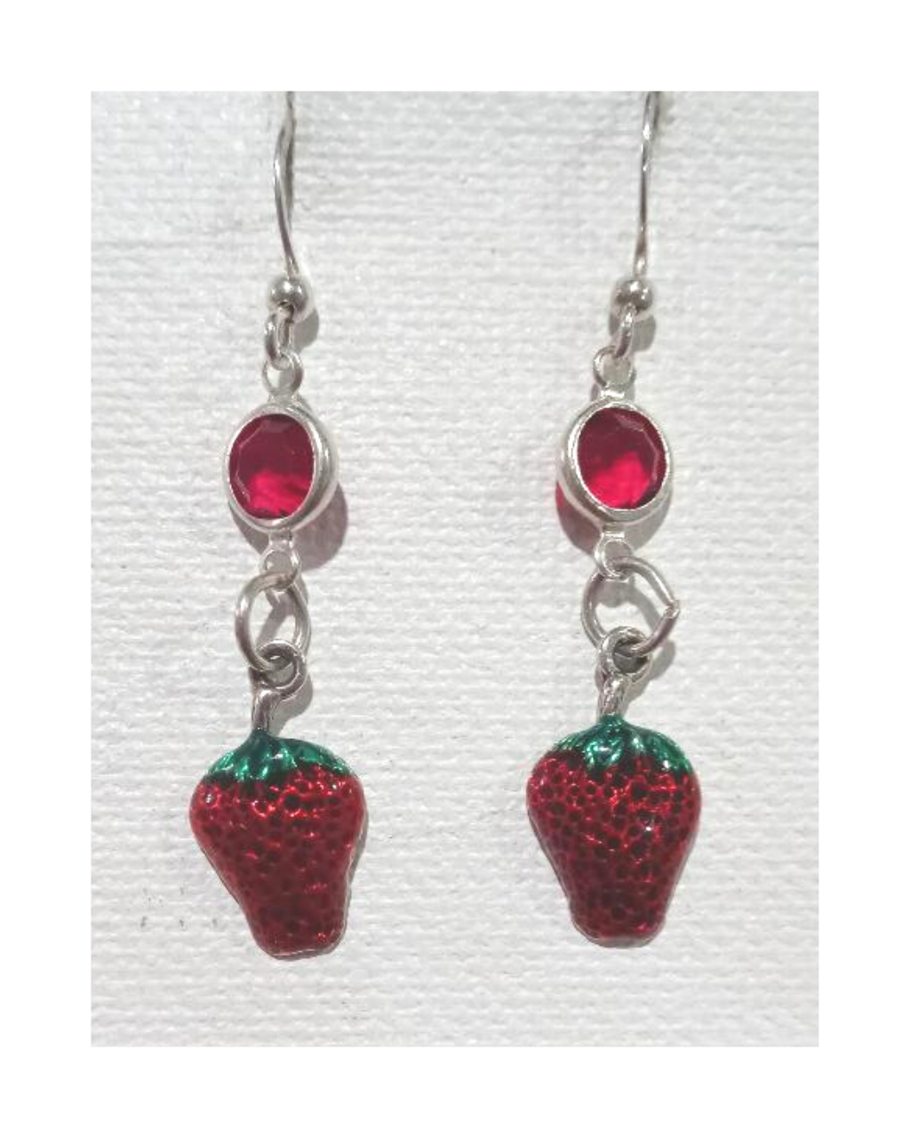 Sterling fun exclusive hand-enameled luscious red strawberry earrings with red Swarovski crystals. Looks almost real enough to munch! 1 7/8"L X 3/8"W