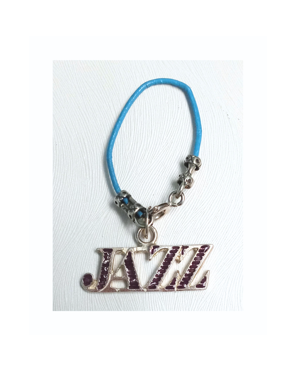 Sterling word jazz purple enamel removable charm 7/8"L X 1 1/8"W on leather KooLoop