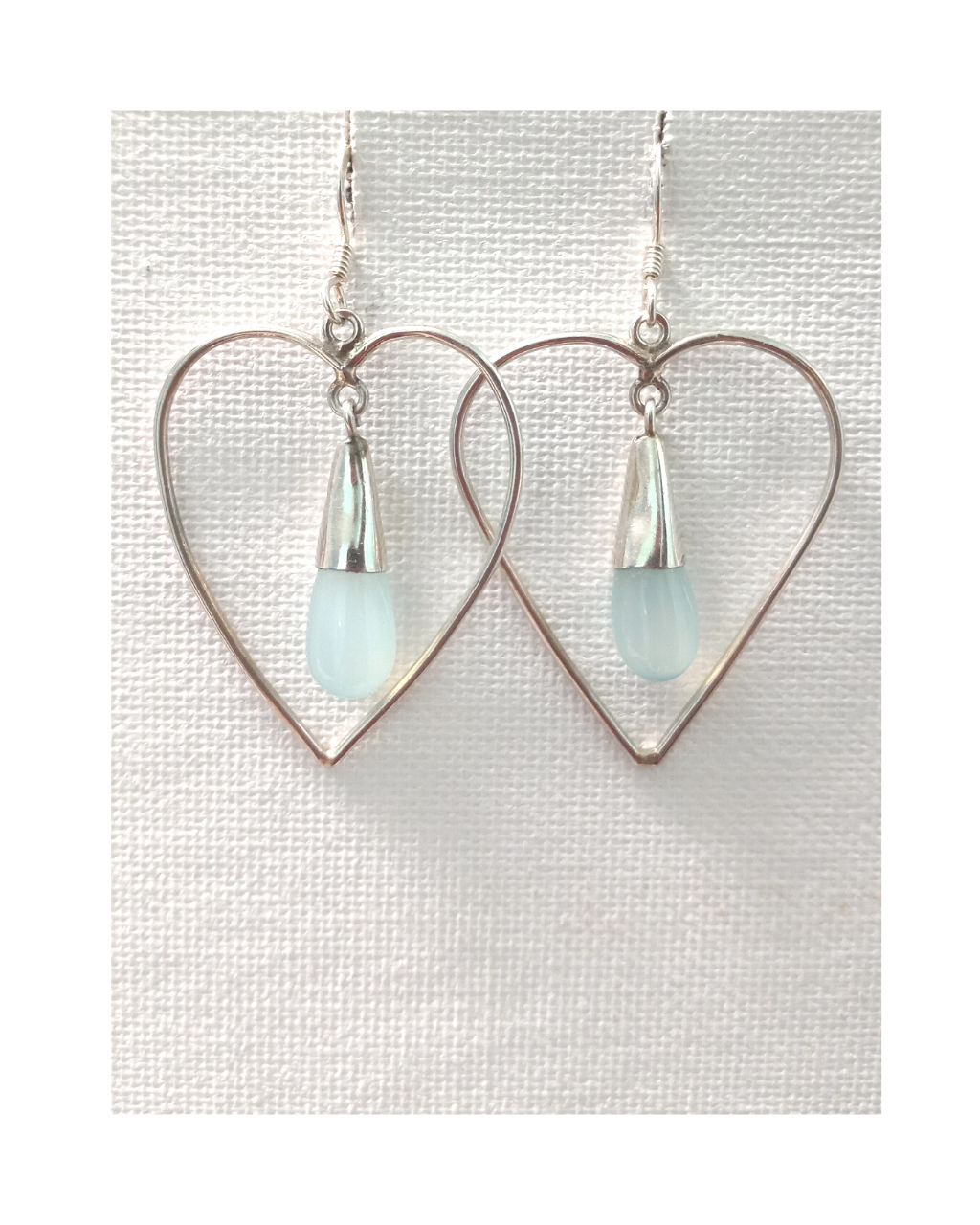 Stunning dangling light blue chalcedony in large open heart sterling earrings 2 1/8"L X 1 1/4"W ONE ONLY