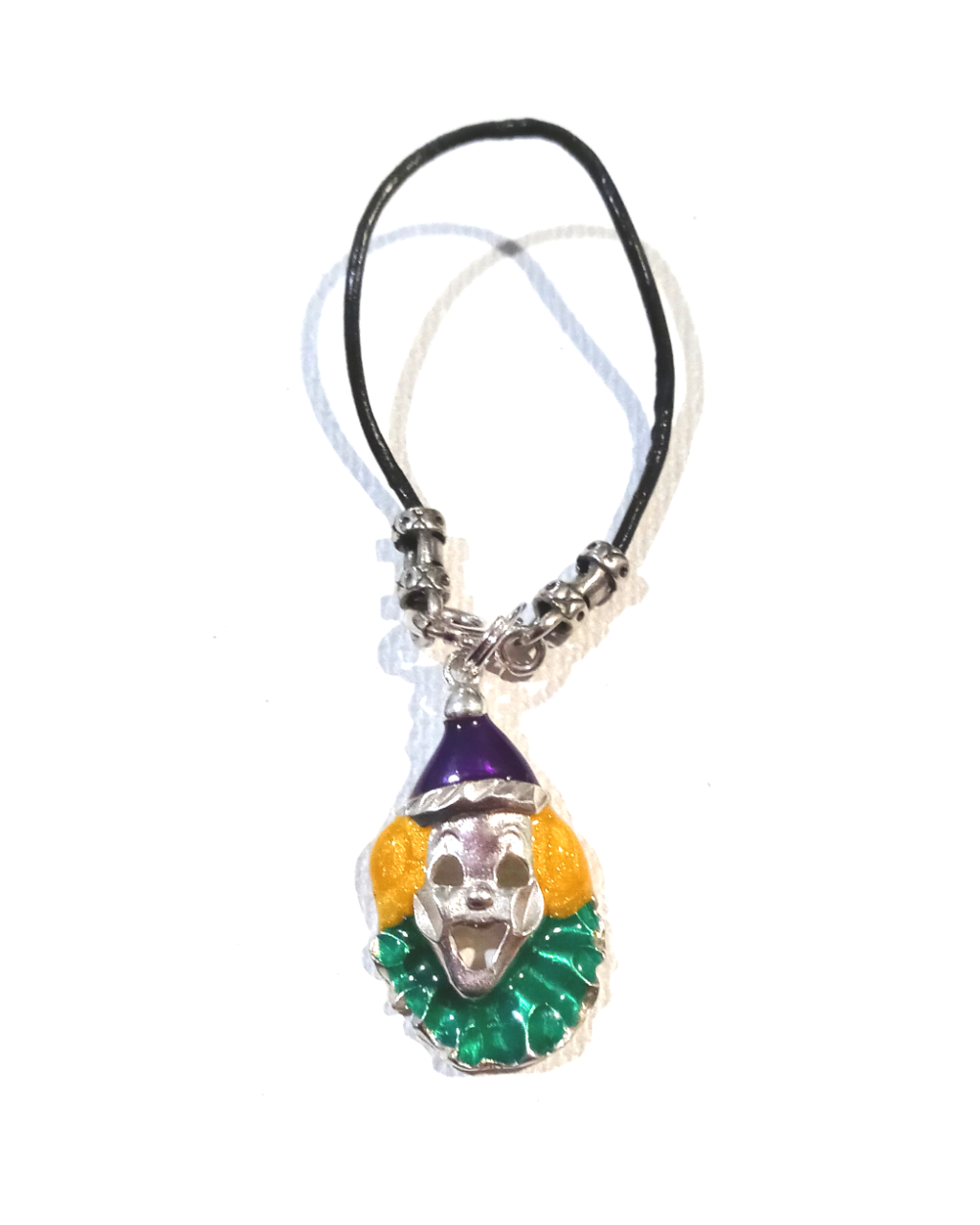 Mardi Gras KooLoop Hand-enameled Pierrot Clown Removable Sterling Charm on Leather Loop.