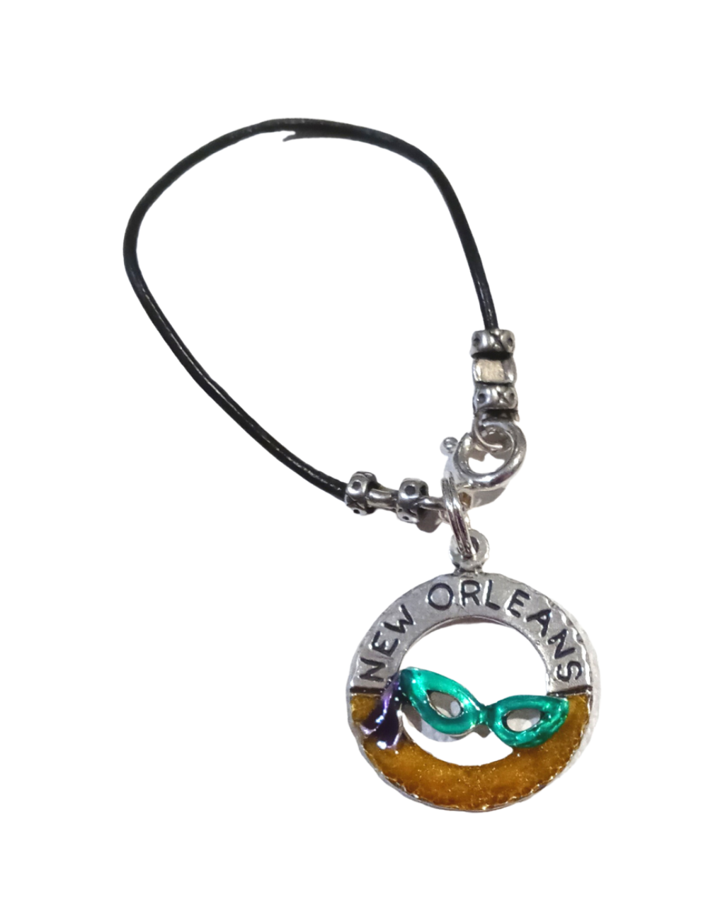 Mardi Gras KooLoop Hand-enameled New Orleans with Green Mask Removable Sterling Charm on Leather Loop