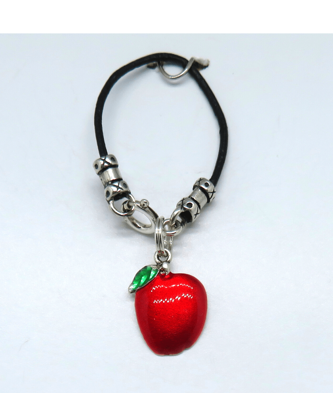 Red Apple Hand-enameled Removable Charm on Leather and Sterling Silver KooLoop approximately 1 7/8″, Removable Charm is 5/16″ L