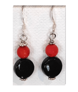 Sterling Red Coral and Black Onyx Dangle Earrings with earwires Approx. 1 1/2". The little red dress, a great black suit, or black jeans. Awesome!