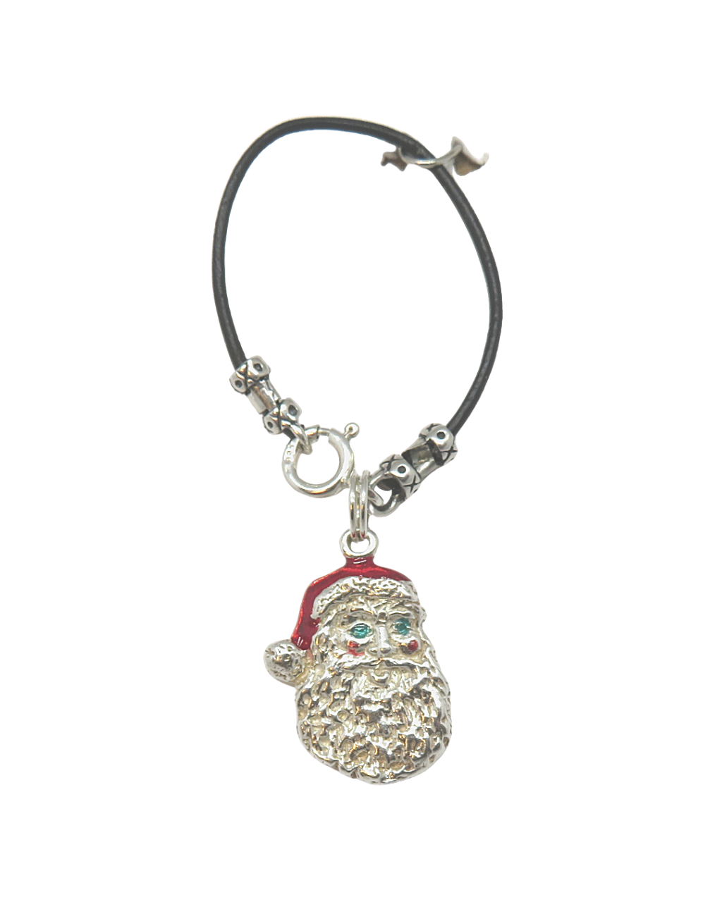 Christmas Santa Claus Face Hand-enamel Sterling Silver Removable Charm on Leather and Sterling Silver KooLoop approx. 2 9/16"