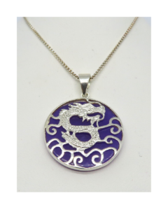 From our Vault Collection, this stunning sterling silver pendant features a cut-out dragon design on a lavender jade base. The removable pendant measures 1 3/8"H x 1"W and comes on an 18" box chain. Love purple? You will love this absolutely beautiful design! ONE ONLY.