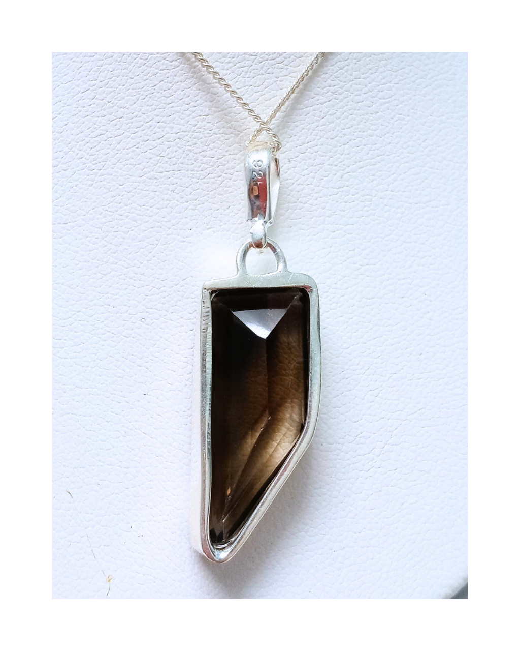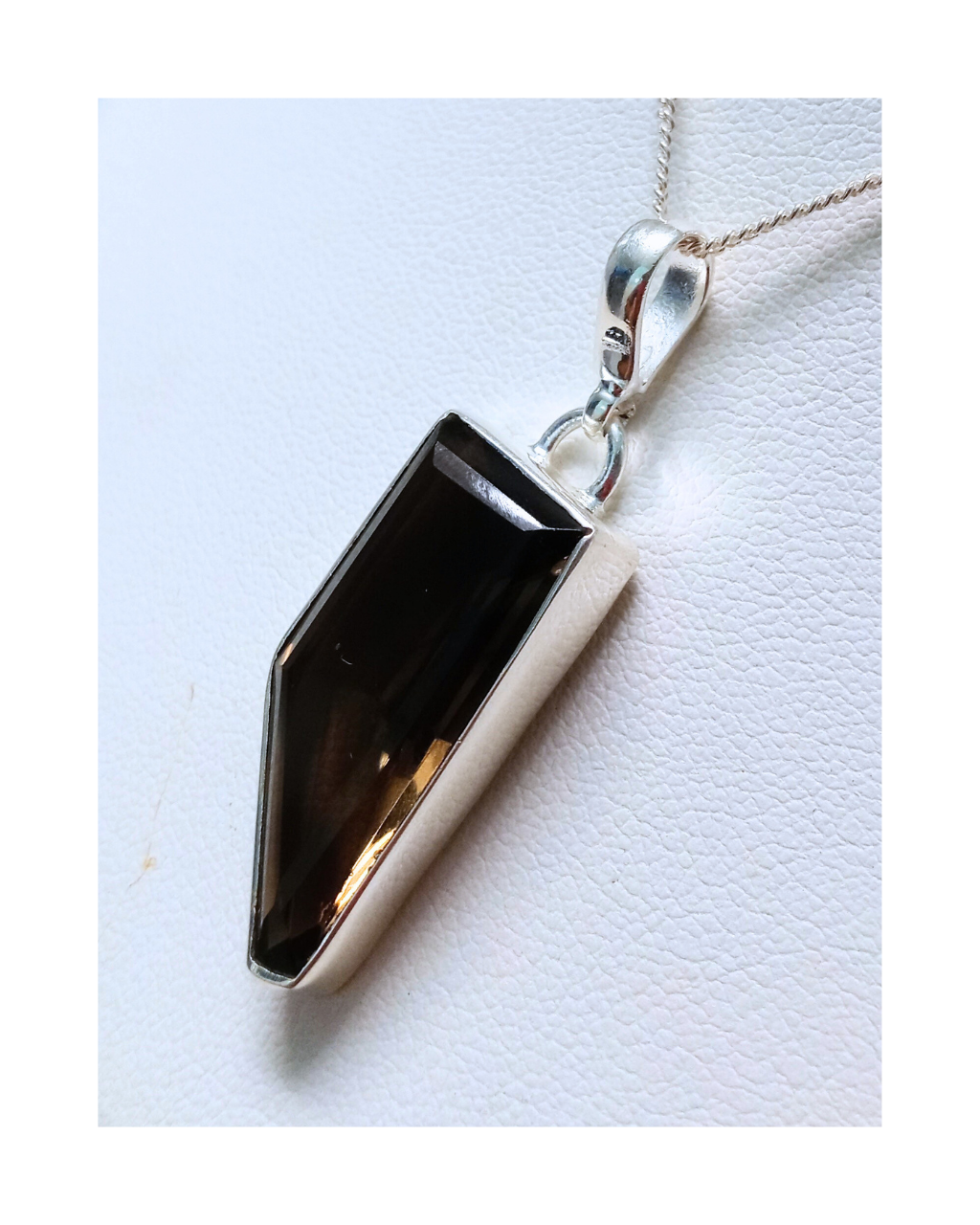 Sterling Uniquely-shaped Faceted Smoky Quartz Removable Pendant 1 3/4"H X 9/16"W and 16" Curb Chain. ONE ONLY